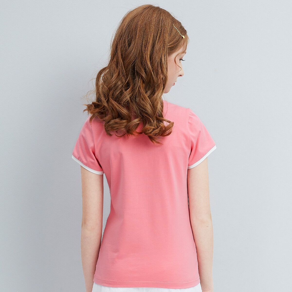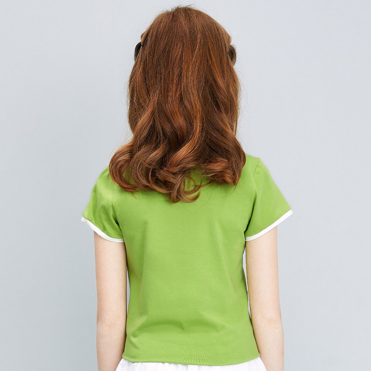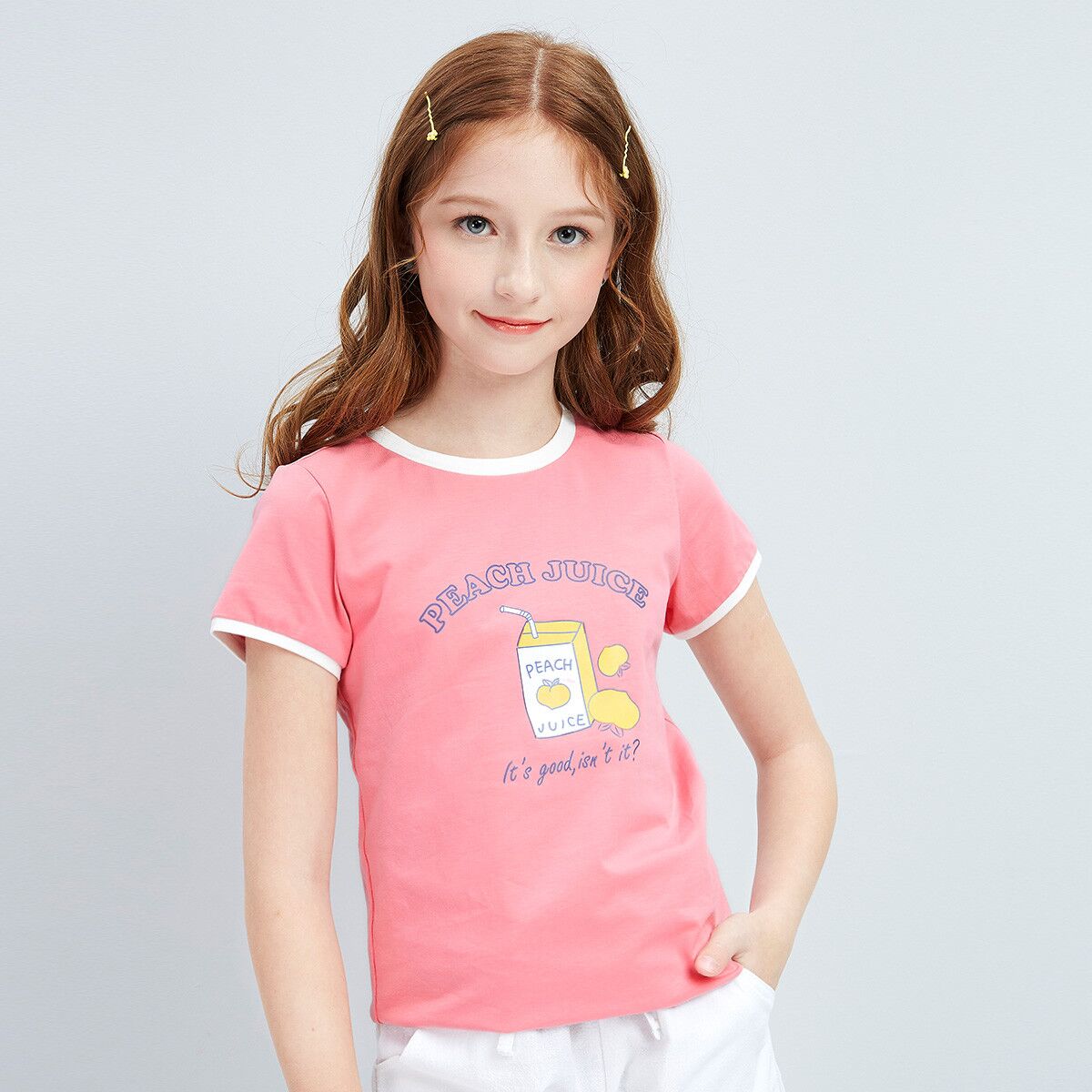 Crafted from a premium soft mixed cotton blend, the exquisite T-shirt makes children in sheer comfort all day. The pretty piece features round neckline traced with contrasting line. Adorable fruit and letter motifs disclose children’s fun in the carefree time. It is easily pairs with skirt or pant with multiple colors