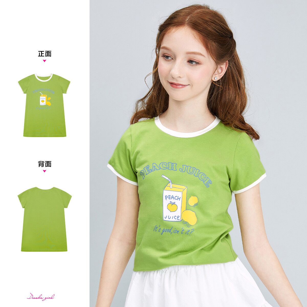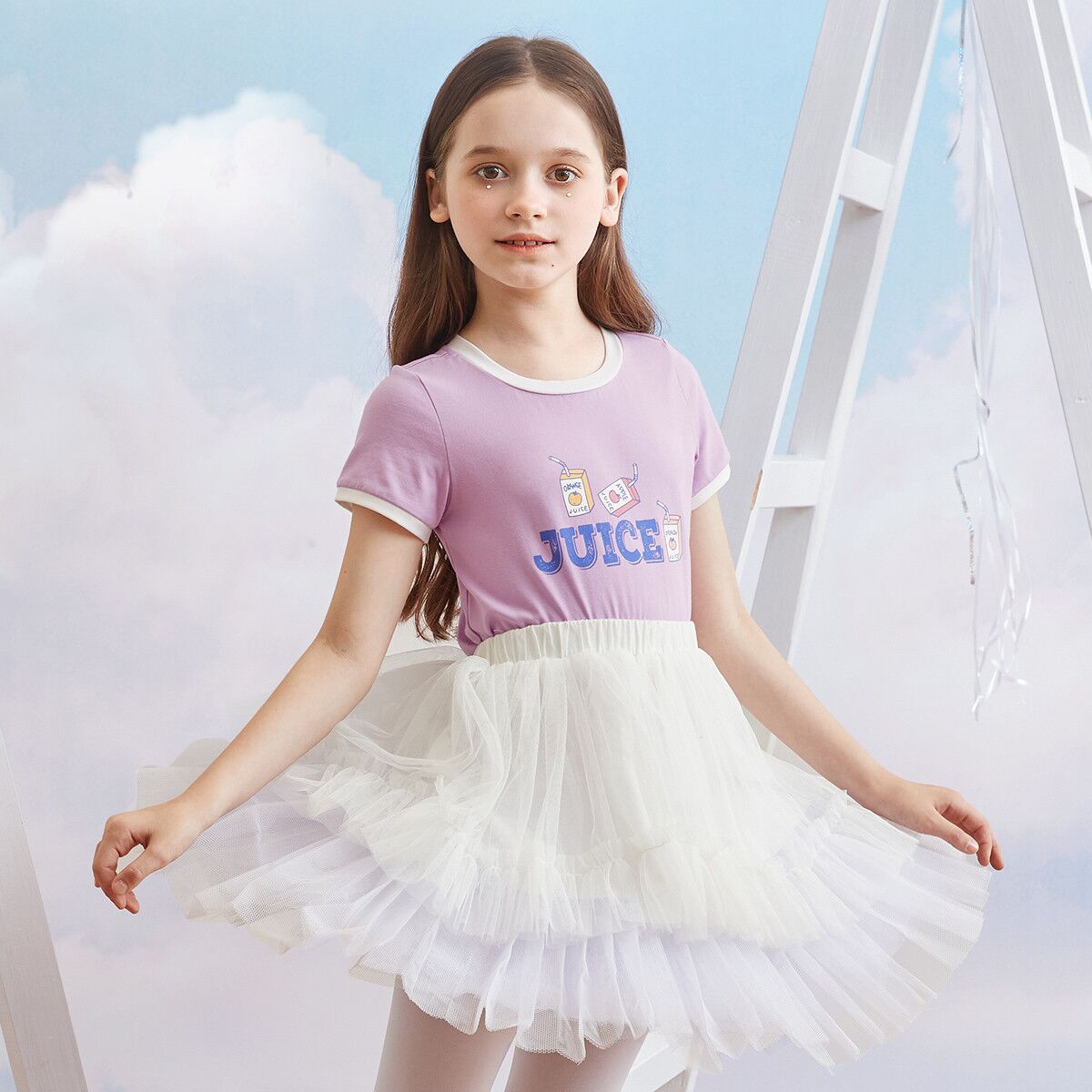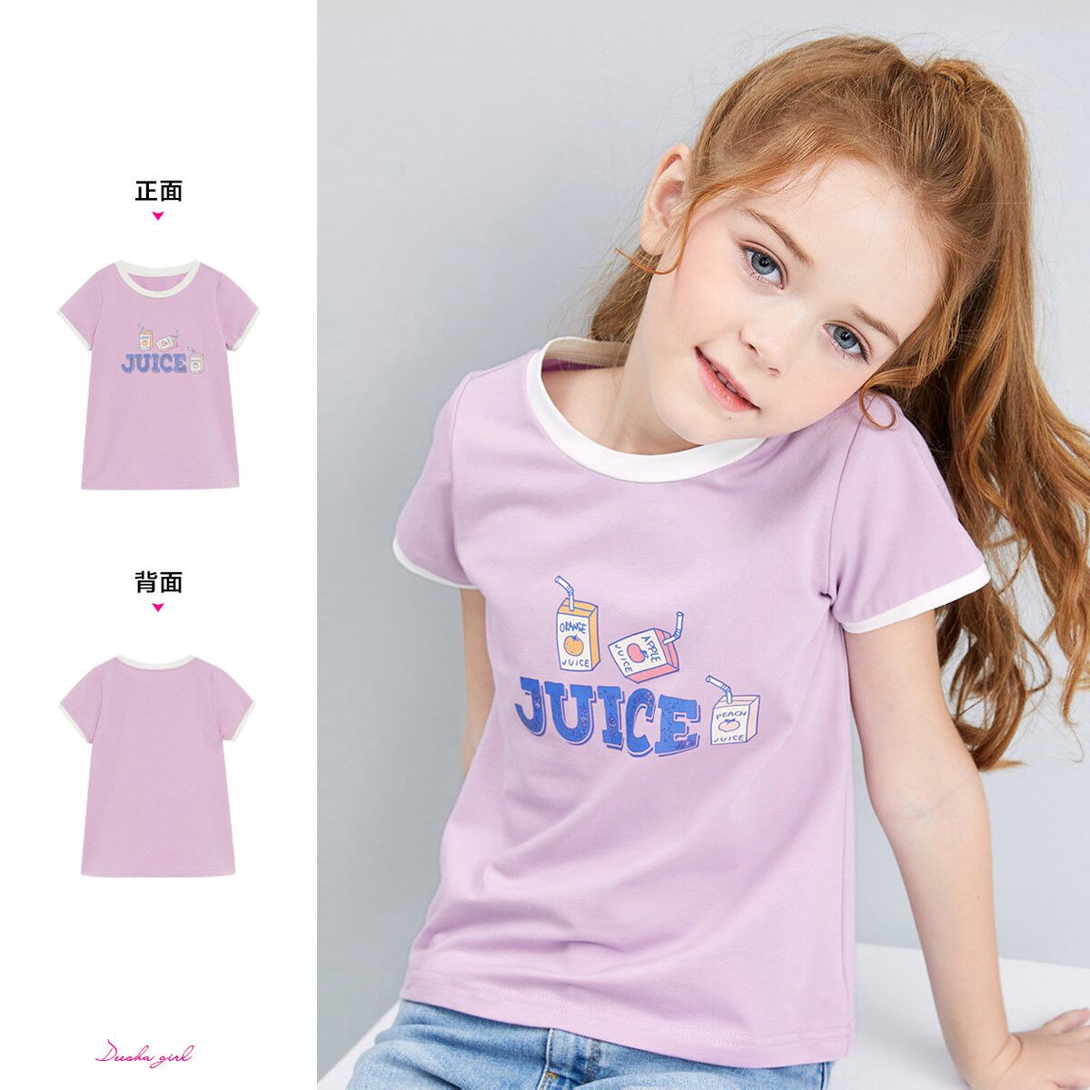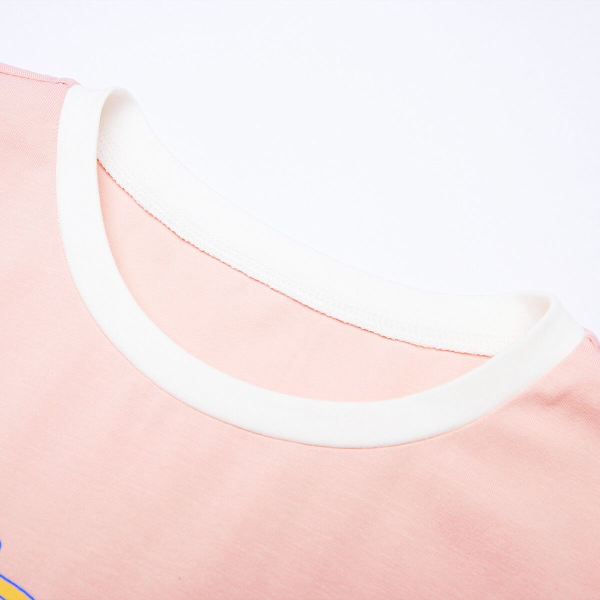 Crafted from a premium soft mixed cotton blend, the exquisite T-shirt makes children in sheer comfort all day. The pretty piece features round neckline traced with contrasting line. Adorable fruit and letter motifs disclose children’s fun in the carefree time. It is easily pairs with skirt or pant with multiple colors