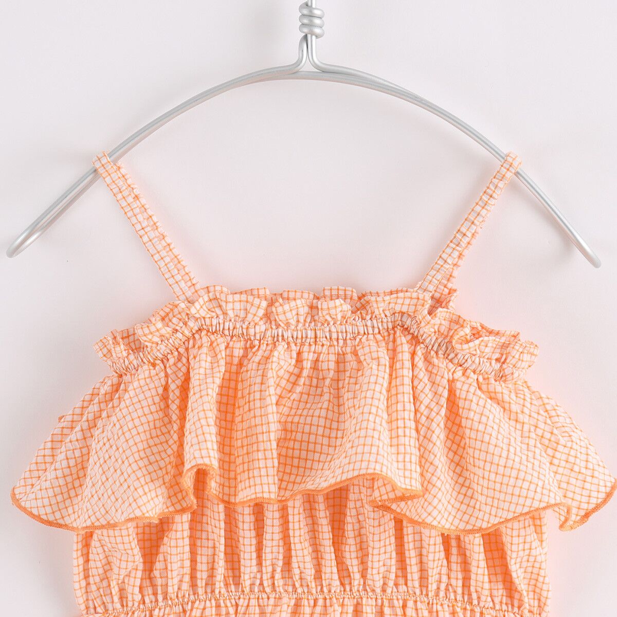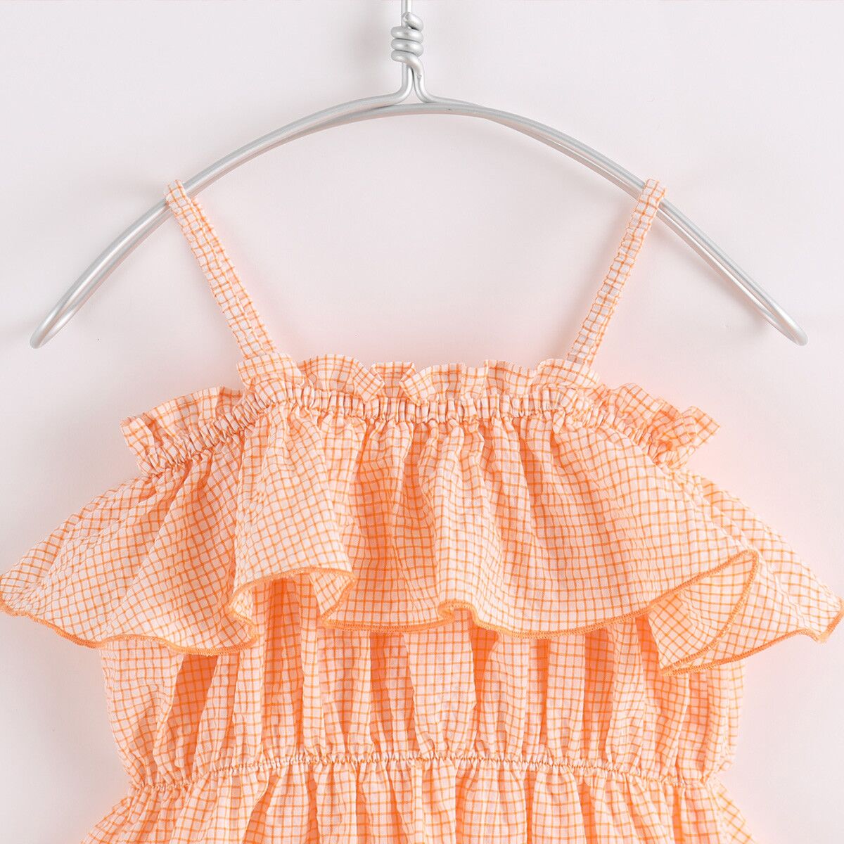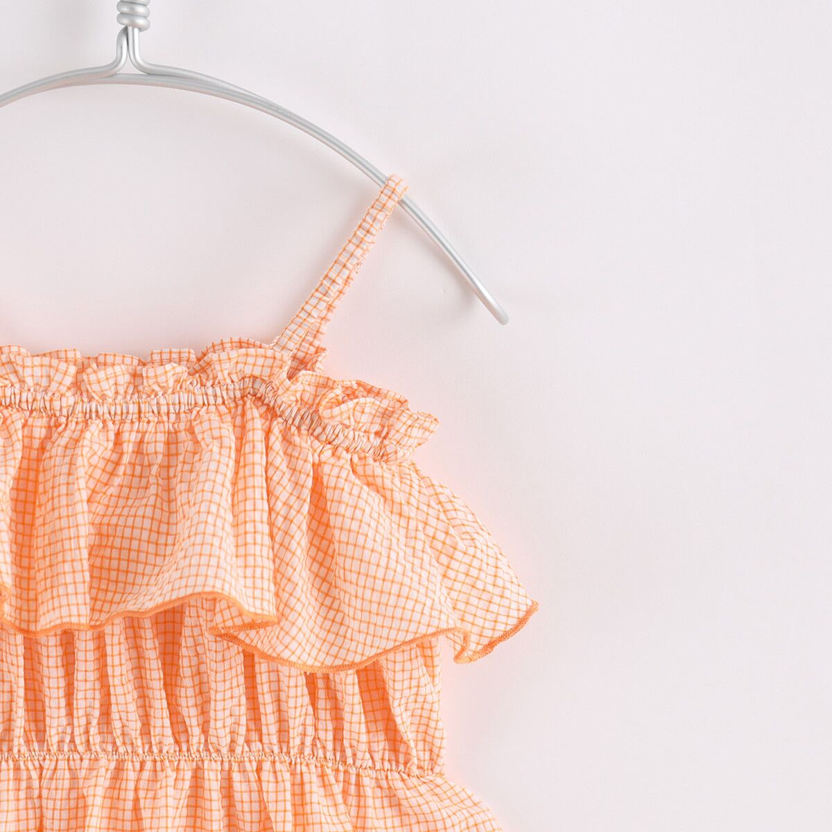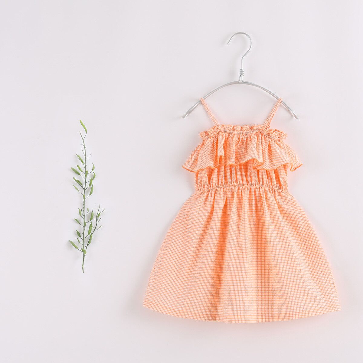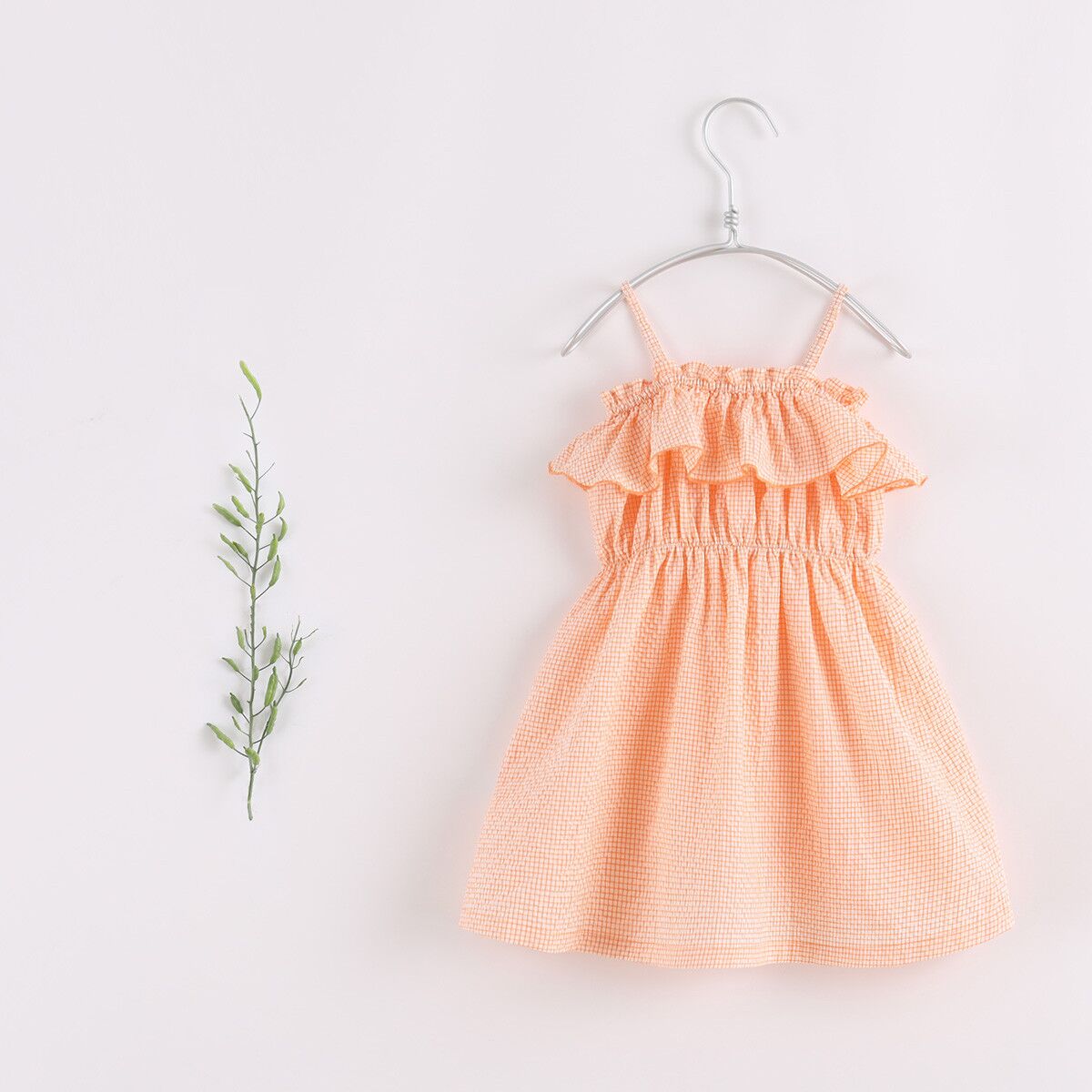 Crafted from premium soft cotton, it is soft and gentle to kids’ skin. The delicate dress is cut to sit high on the waist with voluminous flared skirt, patterned with classic plaid muslin and stunning turn-down collar gathered for a ruched effect like bloom. Floaty and graceful, this is a perfect piece fit for your girl in hot days