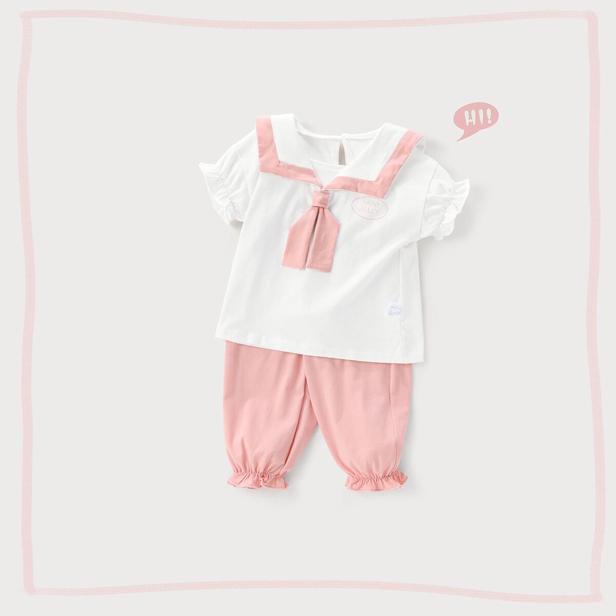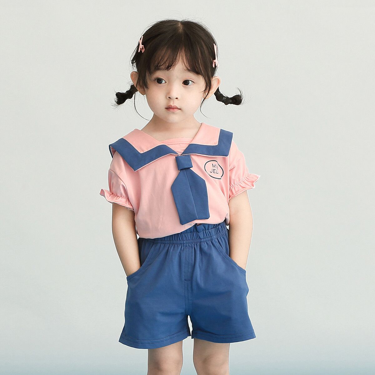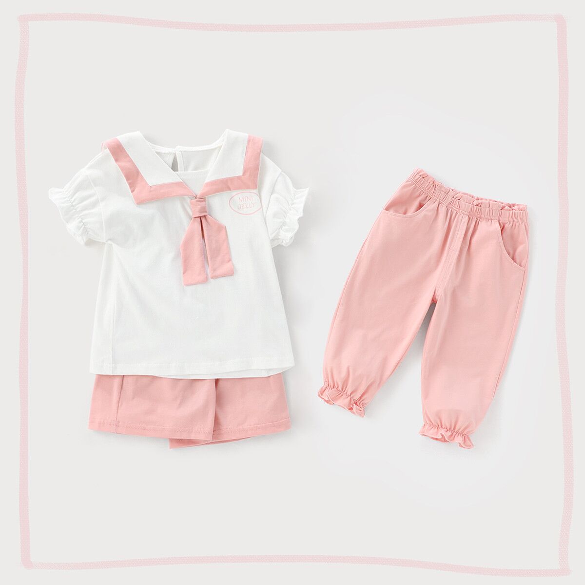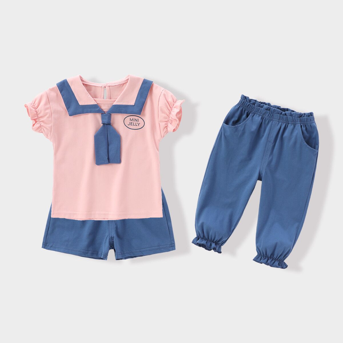 Crafted from a fantastically soft mixed cotton blend,the little top features a squared collar traced with contrasting blue/pink trim and unique tie. Paring with short pant and long trousers simultaneously, the suit is fit for various occasion, bringing fresh air to kids