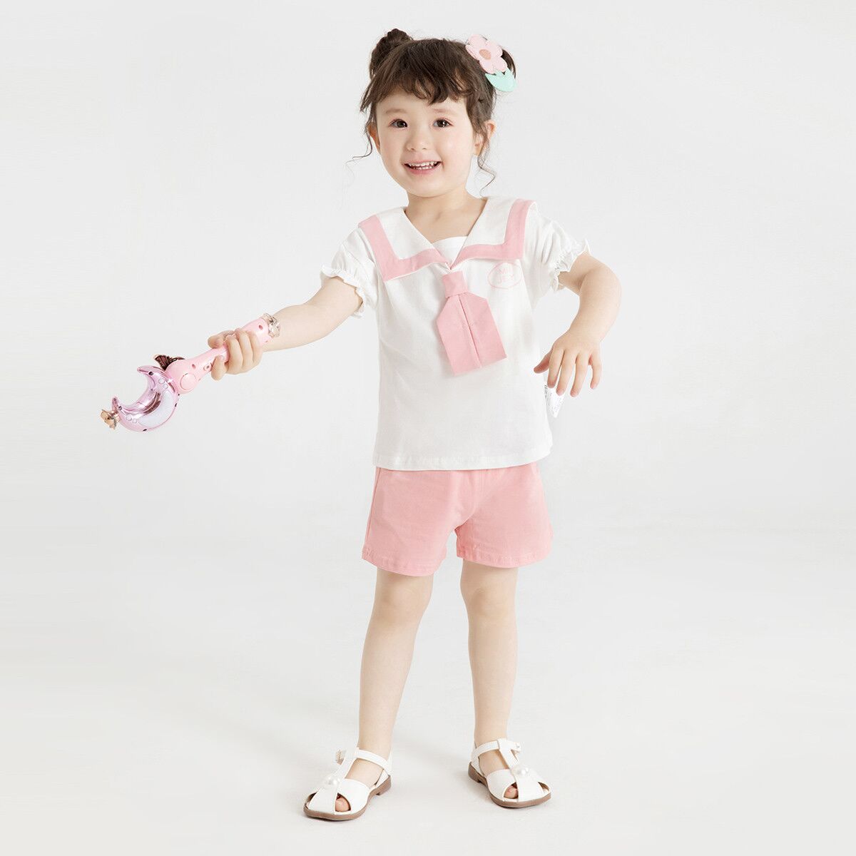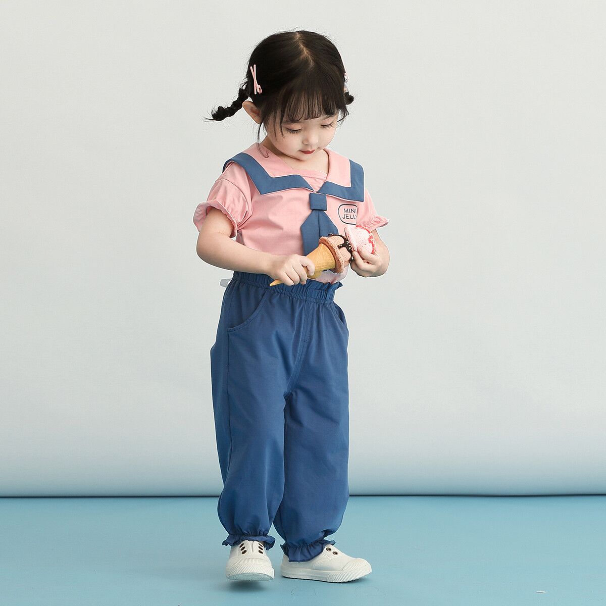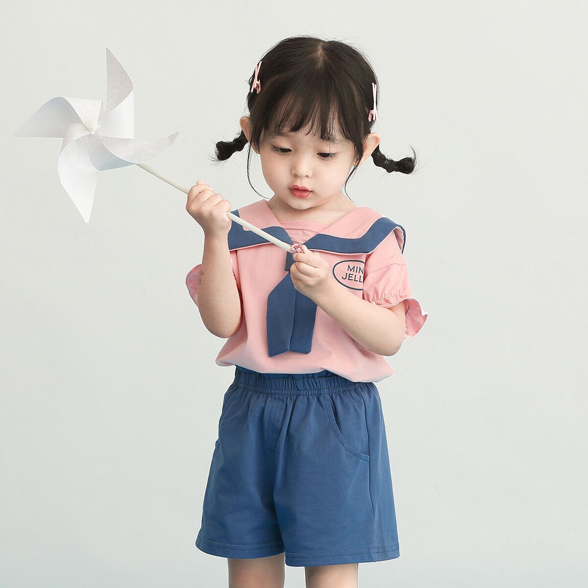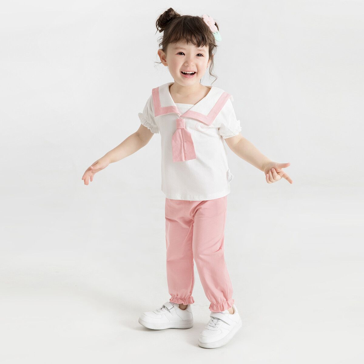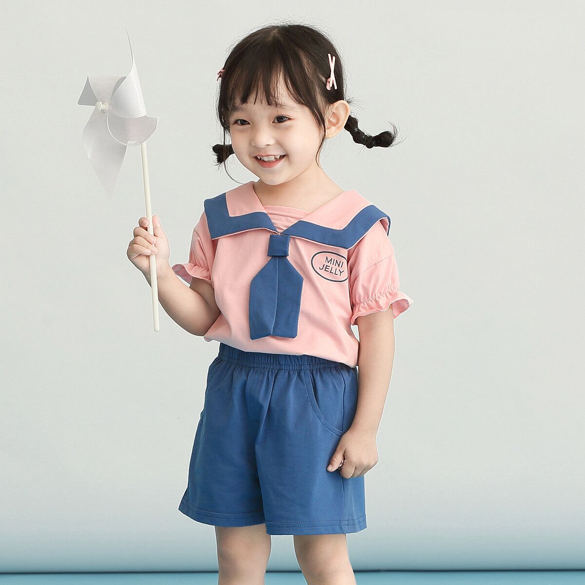 Crafted from a fantastically soft mixed cotton blend,the little top features a squared collar traced with contrasting blue/pink trim and unique tie. Paring with short pant and long trousers simultaneously, the suit is fit for various occasion, bringing fresh air to kids